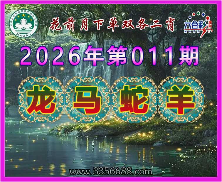 011期:『花前月下』 ♣️单双各二肖♣️【龙.马.蛇.羊】开:00准